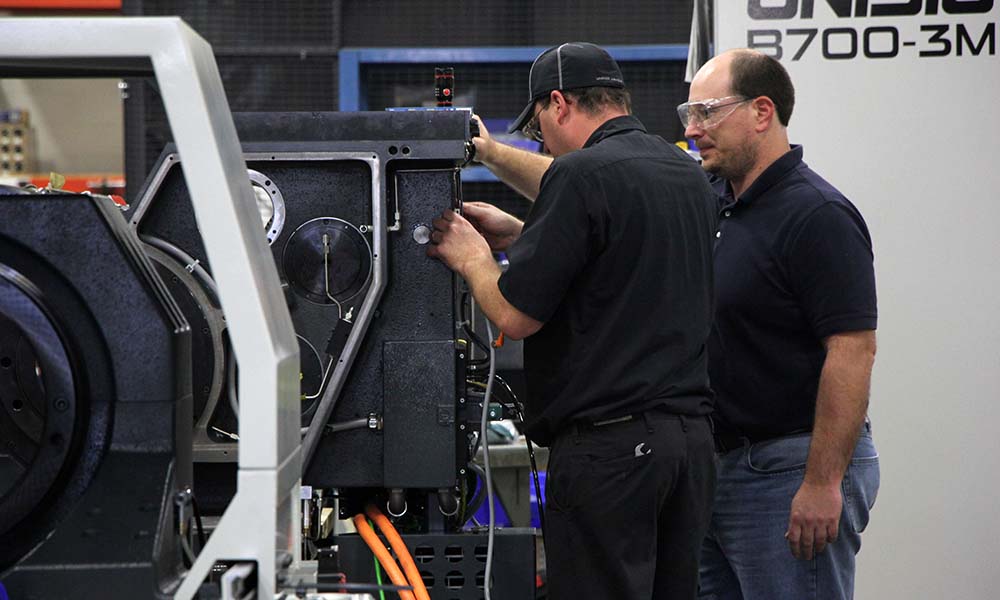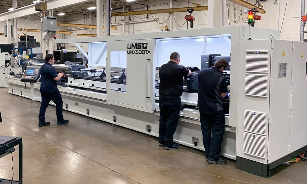Our engineering team has exceptional capabilities in these areas. We build impressive geared headstocks for our large B-Series machines. Our USC-M series machines have 5-axis positioning and their positioning accuracy is measured in microns. Most machines in the world don’t need this type of accuracy, but all of ours do.
